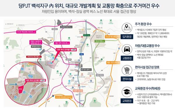 - 생활편의시설: 하나로마트(백석농협) 등 다양한 상업시설 인접